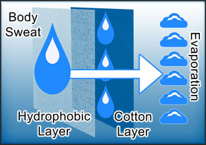 - Wicking Pima Cotton Outer Layer Provides the Fastest Evaporative Cooling